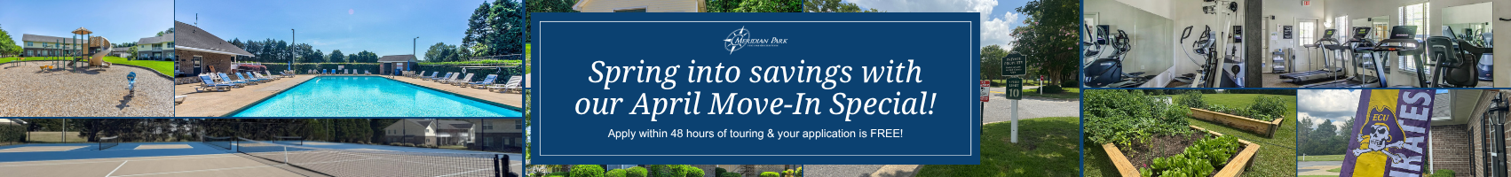 Beautifully landscaped grounds create a wonderful living environment at Meridian Park. Our community offers unbeatable location, superior customer service and amenities. We offer spacious one and two bedroom apartment homes. Meridian Park is located minutes from ECU Health, ECU Brody School of Medicine and East Carolina University. Our location puts you within close proximity of the area’s most desired shopping and entertainment with easy access to Hwy 264 and Hwy 11.